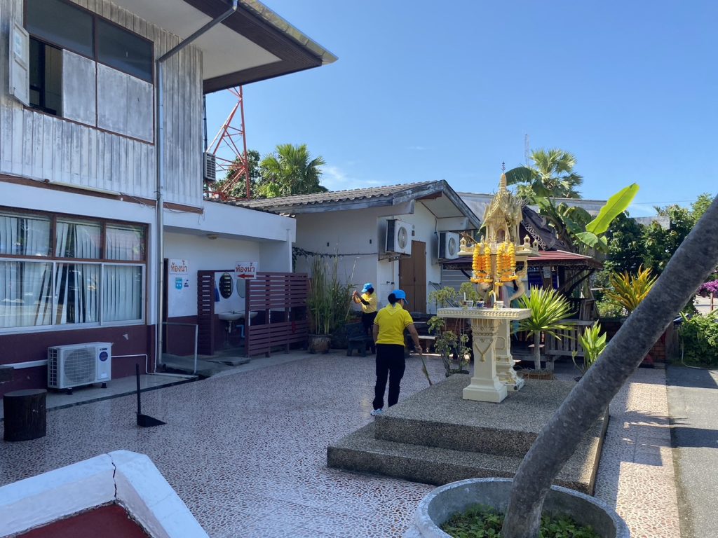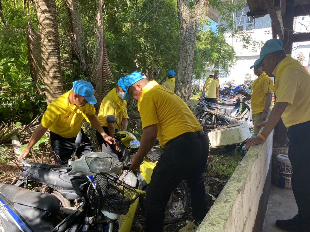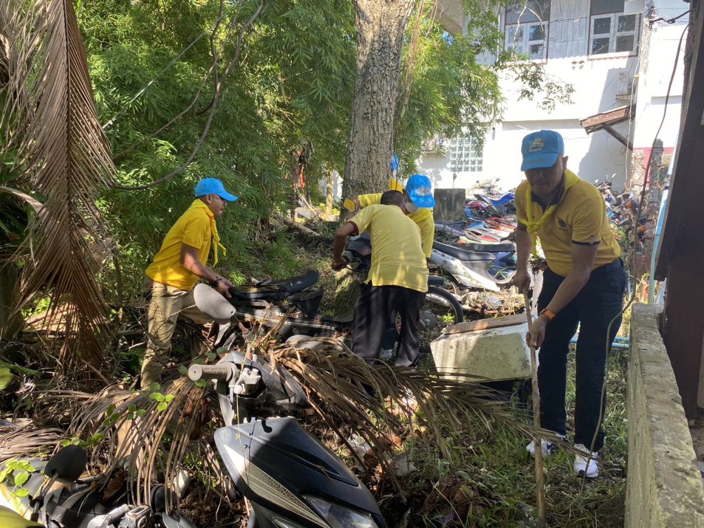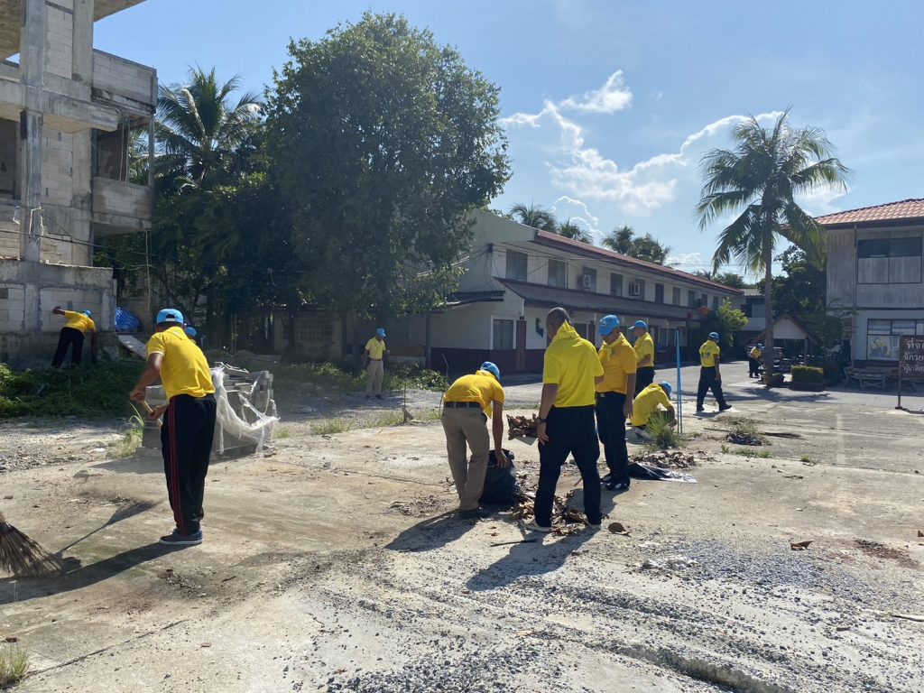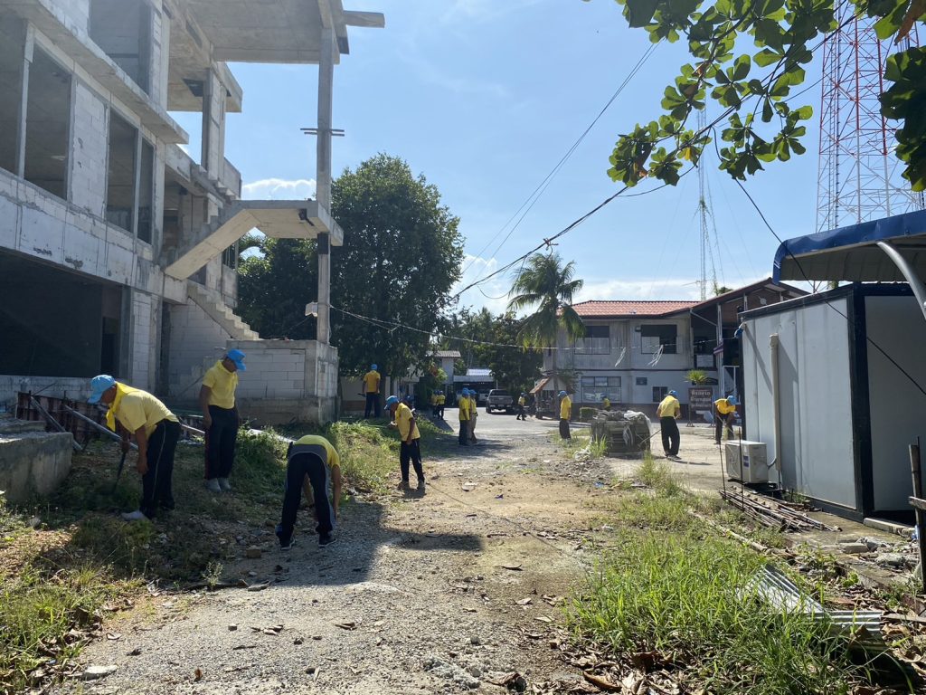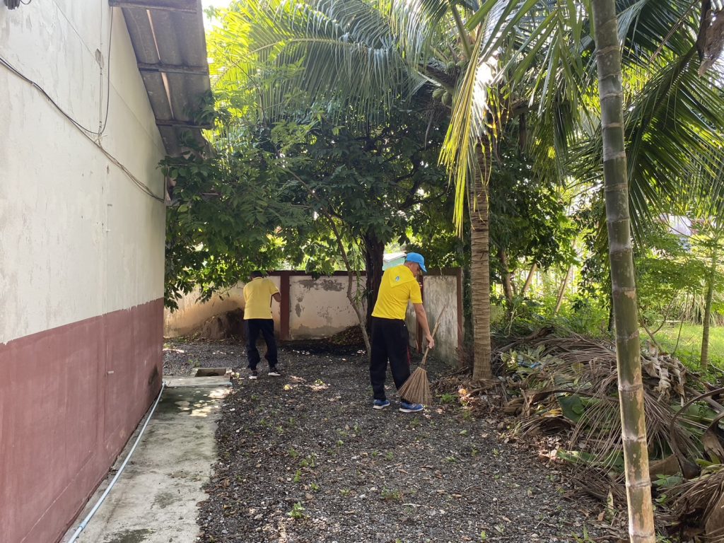 3. การปฏิบัติ : ร่วมพัฒนาปรับปรุงภูมิทัศน์ ตัดแต่งกิ่งไม้ ต้นไม้ ตัดหญ้า เก็บกวาดขยะ บริเวณรอบสถานีตำรวจภูธรสทิงพระ ม.4 ต.จะทิ้งพระ อ.สทิงพระจว.สงขลา