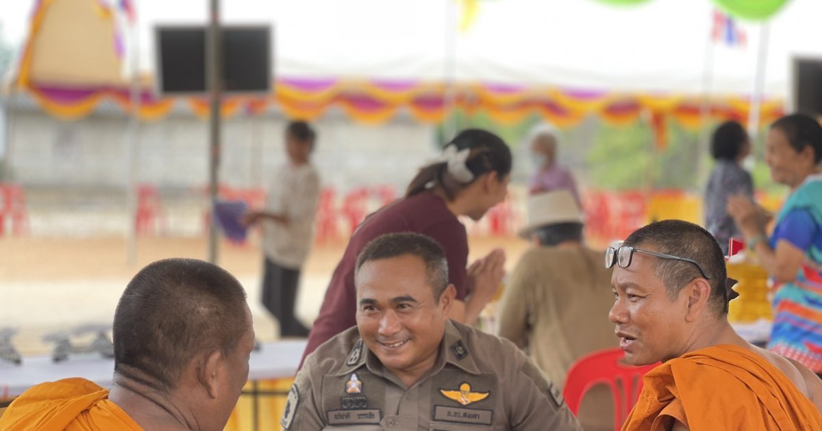 ตรวจสอบความเรียบร้อยภายในงานปิดทองฝังลูกนิมิต ซึ่งจัดขึ้นในระหว่างวันที่ 8 – 15 เมษายน 2567 พบอาสาสมัครตำรวจบ้านปฏิบัติหน้าที่อำนวยความสะดวกและรักษาความปลอดภัยบริเวณทางเข้างาน ได้แนะนำการปฏิบัติ ช่องทางสื่อสารกรณีมีเหตุจำเป็นเร่งด่วน/พูดคุยกับประชาชนผู้มาร่วมงาน